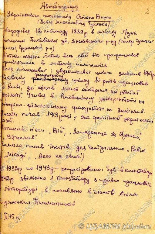 Копія автобіографії Остапа Вишні. Фото: minjust.gov.ua