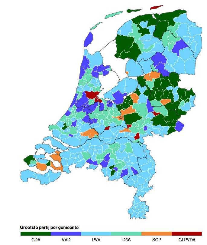 Попри те, що альянс GL/PvdA (Зелені/Партія праці) здобув перемогу в Амстердамі, в інших великих містах, зокрема в Гаазі, Роттердамі, Утрехті та Гронінгені, лідирувала партія D66.
