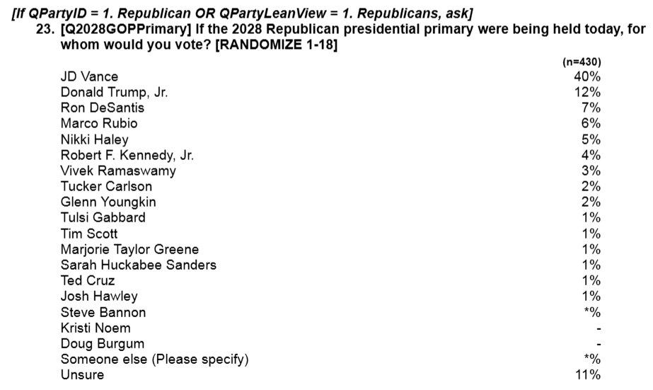 Свіжі опитування від аналітичної служби Echelon Insights щодо президентських виборів 2028 року демонструють неабияку турбулентність у настроях американських виборців.
