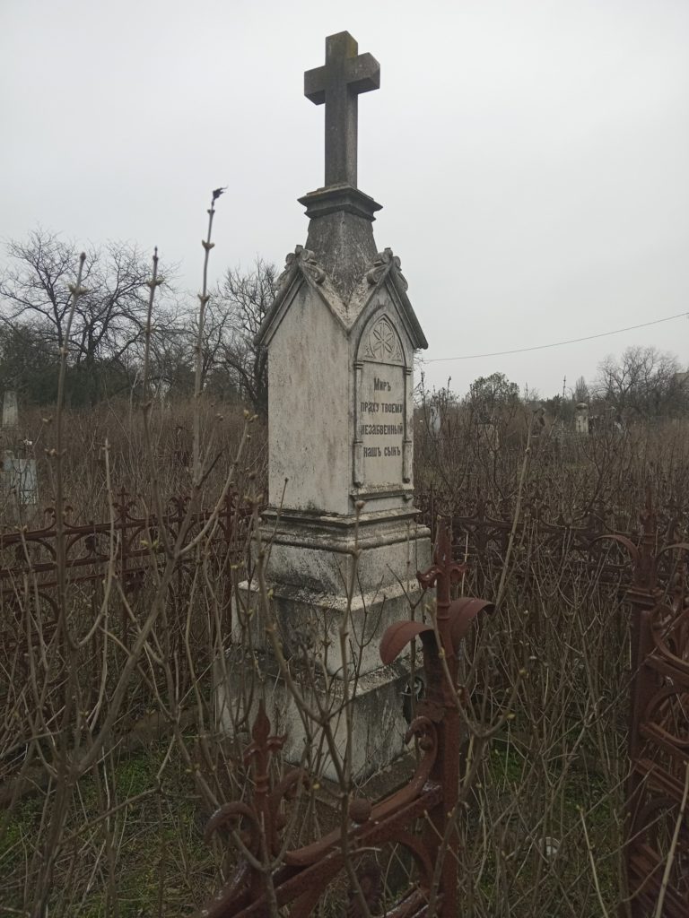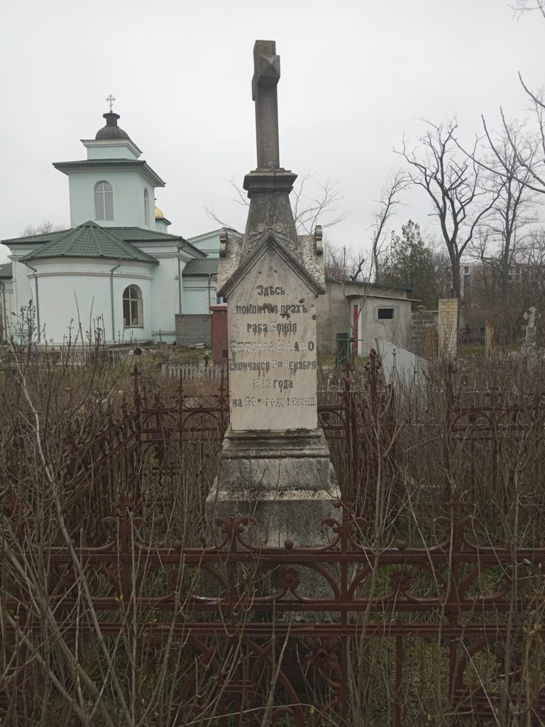 Два мармурові надгробки у північно-західному секторі Старого міського кладовища у Херсоні. Перше належить вдові поручика Меланії Григор’євій (1860 р.), друге – юнакові з польської родини Федору Балло (1912 р.)