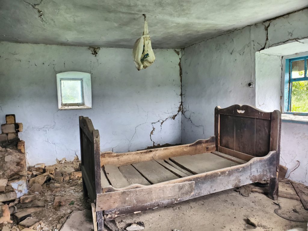 Покинута але не зруйнована, лише грубу розібрали, адже там цінна вогнетривка цегла, а дерев’яне ліжко – справжній музейний експонат, чомусь ніхто не зачіпає.