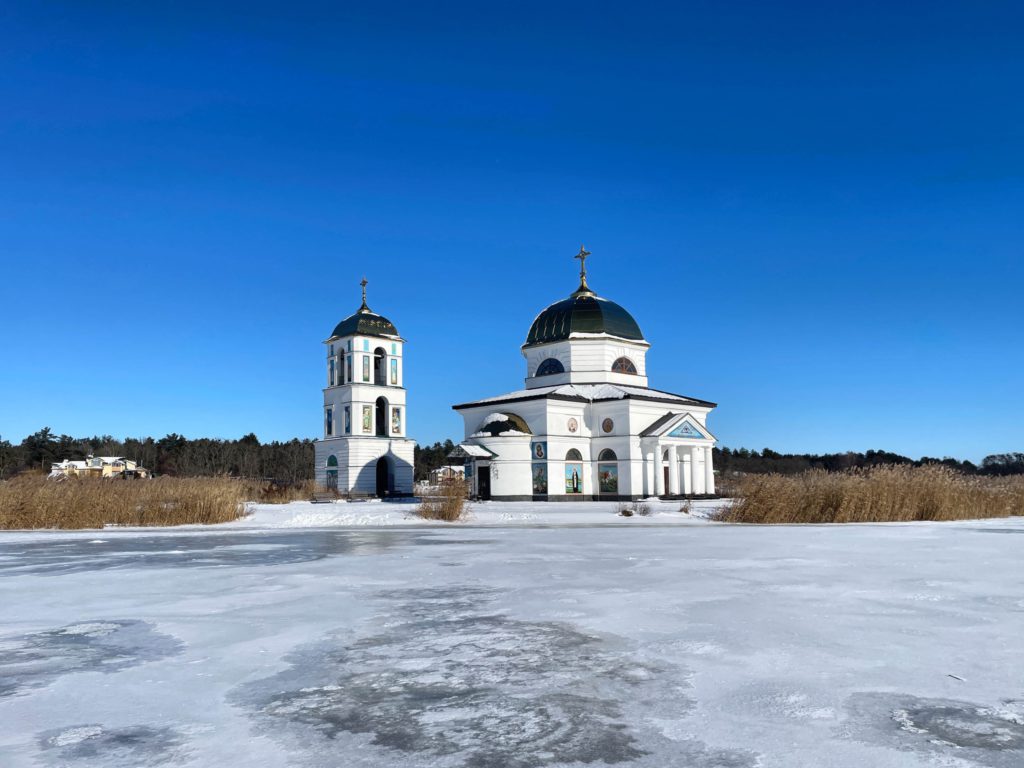 КИЇВСЬКА ОБЛАСТЬ—Спас на воді – Спасо-Преображенська церква затопленого села Гусинці. Зараз до неї можна дістатись лише по кризі Канівського водосховища від Ржищева. Це близько 5 км.