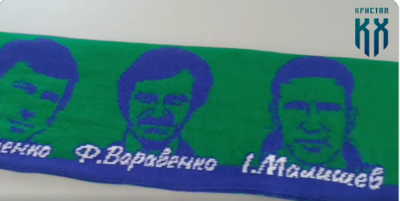 На одній стороні шарфа зображено сім знакових постатей, які в різні епохи зробили вагомий внесок у розвиток «Кристала». Іншу сторону прикрашає назва клубу, стилізована під традиційний орнамент української вишиванки.