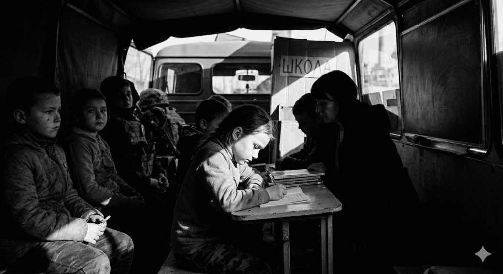 Головна мета таких «мігруючих шкіл» — не надання знань, а охоплення якомога більшої кількості дітей російською пропагандою в умовах, коли повноцінна робота шкіл неможлива.