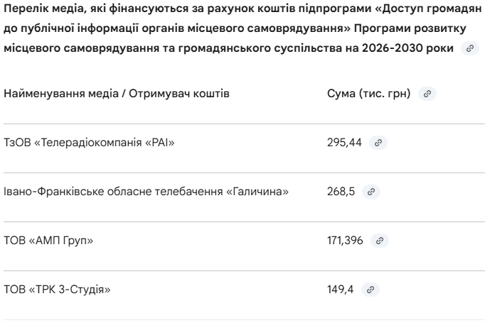 ІВАНО-ФРАНКІВСЬК—Виконавчий комітет Івано-Франківської міської ради затвердив перелік медіа, які отримають фінансування з бюджету громади у 2026 році.