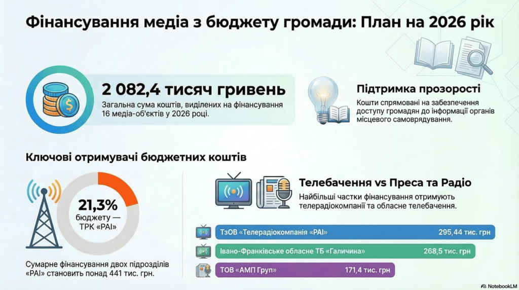 Загальна сума, закладена на фінансування медіа-послуг у 2026 році, становить 2 082,436 тис. грн.