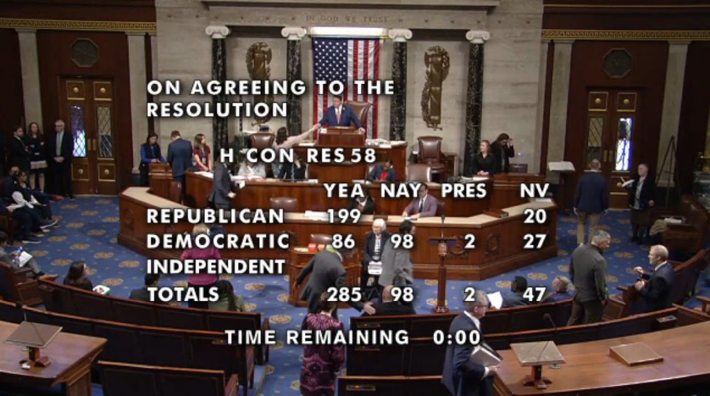 До республіканців приєдналися 86 представників Демократичної партії, які також віддали свої голоси «за». Враховуючи сучасний політичний клімат у США, підтримка такої резолюції майже половиною присутніх демократів стала сміливим та знаковим кроком, що свідчить про глибокі ідеологічні дискусії всередині партії.