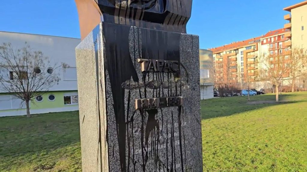 Зловмисники облили погруддя Тараса Шевченка чорною фарбою та зірвали літери з підпису на постаменті. Пам’ятник, який є важливою культурною точкою для місцевої українсько-русинської громади, був встановлений лише три роки тому — у лютому 2021 року.