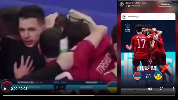 Одразу після завершення гри один із лідерів вірменської команди, Денис Невєдров, допустив публічне образливе висловлювання на адресу України. Інцидент потрапив у об’єктиви телекамер під час прямої трансляції, що робить доказову базу неспростовною.